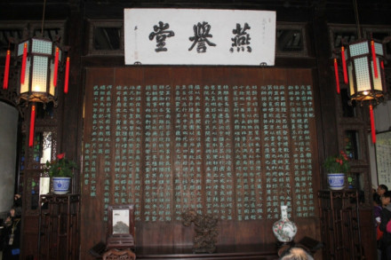 燕譽(yù)堂堂名出自《詩經(jīng)·小雅·車舝》“式燕且譽(yù),好而無射”,意為燕而娛樂、始終不已之意。燕譽(yù)堂為全園主廳,原是園主宴客所用。此廳是蘇州園林中較為有名的鴛鴦廳。梁上站三位神仙一位小童,有吉星高照的意思。