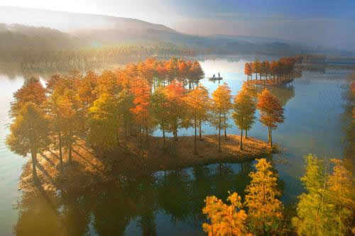 有山有水,山水相連,那才是旅游佳境。鐵山寺年降雨量在1000毫米以上,而山上的石頭又多為玄武巖,水順著石頭向山下流。涓涓細(xì)流匯集山澗,直奔天泉湖。天泉湖水域9平方公里,湖面開(kāi)闊,輕霧迷朦。湖面四周層層山巒,近山濃翠,湖光山色交相輝映。湖水能見(jiàn)度可達(dá)十?dāng)?shù)米,常說(shuō)水至清則無(wú)魚,這話用在天泉湖可謂相差甚遠(yuǎn)。天泉湖有百種魚,國(guó)家一級(jí)保護(hù)魚類“中華鱘”在天泉湖中試養(yǎng)成功。這里還建有大型養(yǎng)殖基地,盛產(chǎn)銀魚、鰱魚等。