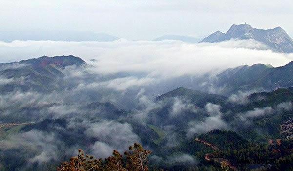 五府山:位于上饒縣南部,武夷山北麓。地處亞熱帶,氣候溫暖,雨量充沛,年平均氣溫在14—18℃之間,年平均降雨量在1880毫米,相對(duì)濕度為84%,一年無霜期為235天。五府山上的五府崗為上饒縣的最高峰。因其在月明風(fēng)清之夜,臨崗遠(yuǎn)眺,舊制的江西“廣信府”、“饒州府”、浙江“衢州府”、福建“建陽府”、“南平府”等“五府萬家燈火盡收眼底”,五府山因此而得名。