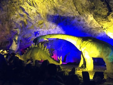 洞盡頭是一泓清潭,深不見底,水氣襲來,令人凄神寒骨,F(xiàn)利用旱洞獨特的資源,經人工改造成為古生物宮,采用先進的聲、光、電技術,再現(xiàn)了古生物的進化演變過程,是游覽和科普教育的最佳景觀。