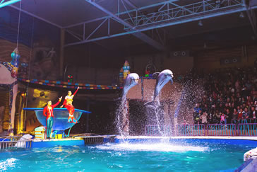奇幻的360度多維水秀場,一段白鯨、海豚的動情表演,一段王子、公主的浪漫愛情,與月光天使、海盜聯(lián)袂演繹真人版的“人魚童話”。多種藝術(shù)形式、多重情感體驗,國際化表演陣容,帶給游客夢幻動人的童話故事。