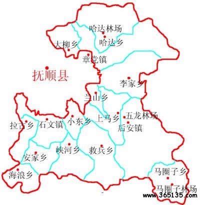 撫順縣轄4個鎮(zhèn)、6個鄉(xiāng)、2個民族鄉(xiāng):
