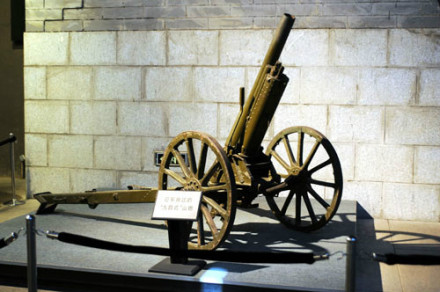 日本九四式山炮:1945年日本其中的戰(zhàn)敗后,其武器、軍備被中國(guó)軍繳獲,其中包括一批九四式山炮。 文革后,一門(mén)九四式山炮幾經(jīng)輾轉(zhuǎn),到了沈陽(yáng)軍區(qū)一分部吉林敦化分庫(kù)的軍需倉(cāng)庫(kù)。1997年12月4日,“九一八”事變紀(jì)念館擴(kuò)建辦公室到吉林敦化征集到該山炮及專(zhuān)用炮嘴。1999年9月18日,該九四式山炮及專(zhuān)用炮嘴由“九一八”歷史博物館收藏。