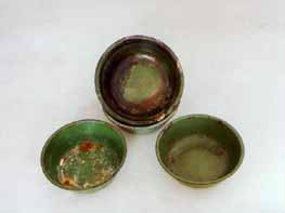 戰(zhàn)犯用的碗、碟:抗戰(zhàn)勝利后,一批侵華日軍及漢奸得到了應(yīng)有的下場(chǎng),在人民的正義審判下,他們也不得不承認(rèn)其犯罪事實(shí),這幾件瓷碗、碟都是當(dāng)年關(guān)押在遼寧撫順戰(zhàn)犯管理所的戰(zhàn)犯?jìng)兪褂眠^(guò)的碟碗。