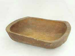 給抗聯(lián)戰(zhàn)士送糧用的木盆:這件木盆長(zhǎng)63厘米,寬44厘米, 高13厘米,是用一段破開(kāi)的圓木,在中部用鑿子鑿成。木盆原存于延邊博物館,是1998年在吉林省汪清縣羅子溝鄉(xiāng)新屯子征集到的。這種形質(zhì)的木盆是當(dāng)時(shí)當(dāng)?shù)亟?jīng)常使用的器具。