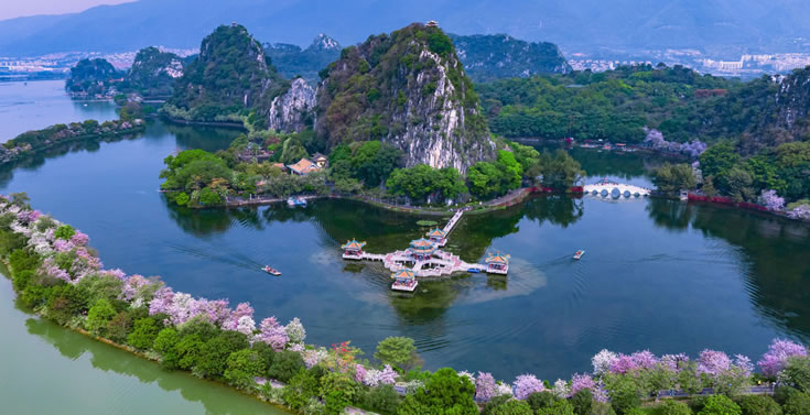 - 亮點:以喀斯特溶巖地貌的巖峰、湖泊景觀為主要特色,包括天柱巖、玉屏巖、石室?guī)r等七座石灰?guī)r山峰,以及中心湖、仙女湖、里湖、青蓮湖和波海湖等五個湖泊。游客可在此欣賞到壯觀的巖峰和清澈的湖水,感受大自然的鬼斧神工。