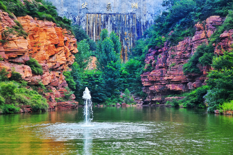伏羲大峽谷位于河南省鄭州新密市西北20公里的伏羲山旅游區(qū)內(nèi),是一條以典型紅巖嶂谷群地質(zhì)地貌景觀為主的峽谷景區(qū)。伏羲山屬于嵩山山脈向東延伸部分,主峰五指嶺1108.5米,橫跨伏羲山全境。景區(qū)氣候溫潤(rùn),四季分明,年均溫11.6℃,比市區(qū)低2.7℃;景區(qū)植被茂密、物種繁多、綠樹掩映、花木扶疏,有千年以上的古樹名木數(shù)十棵,其中具有“活植物化石”之稱的古亢樹,是伏羲山特有的樹種。景區(qū)終年流水不斷,谷底飛瀑、跌水、深潭、平湖,清幽涼爽,姿態(tài)萬(wàn)千,風(fēng)景秀美,巨大的巖石像被打磨過(guò)似的,平坦如鏡,潔凈光滑,游客可以在這里享受世間少有的“巖石浴”;峽谷兩岸巖石兀立,巖壁上天然石梯懸于空中,形形色色的人物以及動(dòng)物的形象惟妙惟肖?傄(guī)劃面積共5.3平方公里,以伏羲文化和紅石大峽谷為主要特色,分為上下兩部分:上部以臥龍臺(tái)、文化隧道、望鄉(xiāng)臺(tái)、八卦臺(tái)、萬(wàn)年栗、栗仙神祠、女媧補(bǔ)天處、神龜折足、五色石等景點(diǎn)為主,全面反映伏羲文化的形成、發(fā)展、傳播以及對(duì)后世的影響;下部以黃龍?zhí)、黃龍廟、簸萁潭、立龍鍋潭、貫云瀑(龍影瀑)、八分潭、烏龜拜壽、九龍?zhí)、圖騰柱、馬蹄溝、沐云梯、等景點(diǎn)為主,深切感受峽谷風(fēng)光,體驗(yàn)自然鬼斧神工。