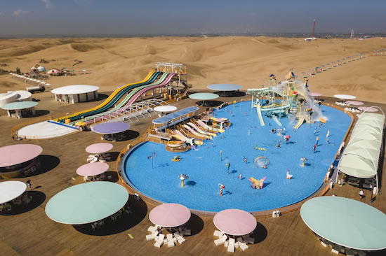 在沙漠中各種深淺的大型泳池里,以各種泳姿釋放自己——在沙丘起伏無際的沙漠里——在沙漠中屬于自己的水的世界里……累了,就躺在清爽的沙灘床上,美美地過上幾個小時,同時可以與同行的人邊吃邊喝邊聊哦,別睡著了,演出一定會有的,悅沙島每天會有十多場不同的演出或比賽,是藝術的、是體育的……