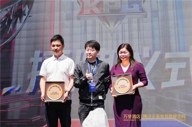 騰訊互娛天美L1工作室王者榮耀全國大賽負(fù)責(zé)人唐然上臺(tái),授予了萬斐酒店騰訊天美電競數(shù)娛空間第九屆王者榮耀全國大賽——浙江省賽官方指定舉辦方,以及杭州賽區(qū)唯一指定總賽點(diǎn)的榮譽(yù)。由西湖文旅旅游發(fā)展有限公司副總經(jīng)理任亮,和上海歐愉科技總經(jīng)理史央清上臺(tái)接受授牌。