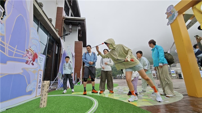 線下,黃山風(fēng)景區(qū)設(shè)置了多個(gè)充滿趣味的 IP 打卡點(diǎn),吸引了來自世界各地的游客紛至沓來。打卡點(diǎn)處不僅有填詩(shī)、投壺等豐富多樣的傳統(tǒng)游戲,讓游客們?cè)谟瓮嬷懈惺苤袊?guó)傳統(tǒng)文化的魅力。參與#跟著一禪詩(shī)游黃山 話題互動(dòng)的游客,還能夠領(lǐng)取精美的聯(lián)名明信片,參與集章活動(dòng)。此外,豐富的抽獎(jiǎng)活動(dòng)更是為游客增添了不少驚喜,現(xiàn)場(chǎng)氣氛熱鬧非凡,歡笑聲、贊嘆聲不絕于耳。