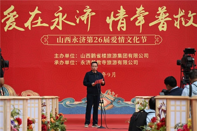 9月 21 日,普救寺迎來了第 26 屆愛情文化節(jié)的盛大開幕式。開場(chǎng)節(jié)目《蒲州花傘》瞬間將人們帶入了濃郁的地域風(fēng)情之中。隨后,主持人隆重介紹到場(chǎng)領(lǐng)導(dǎo)嘉賓。永濟(jì)市政府黨組成員崔子龍發(fā)表了誠(chéng)摯而熱情的致辭,表達(dá)了對(duì)愛情文化節(jié)的美好祝愿和對(duì)永濟(jì)文化旅游事業(yè)的殷切期望。市委宣傳部部長(zhǎng)李朝霞宣布開幕,正式拉開了本次愛情文化節(jié)的精彩帷幕。