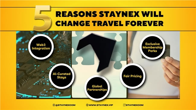 作為旅游行業(yè)的先驅(qū),Staynex 將數(shù)字技術(shù)與現(xiàn)實世界的專業(yè)服務(wù)無縫融合,重新定義探索世界的方式。通過獨(dú)特的 Web2.5 戰(zhàn)略,打造了獨(dú)家合作伙伴關(guān)系與企業(yè)聯(lián)盟,為酒店及度假村預(yù)訂提供無與倫比的價值與優(yōu)惠。 整合了 Web3 技術(shù)和人工智能,具有真實世界資產(chǎn)(RWA)層。通過 “權(quán)益池”(Stake & Claim Pool)的經(jīng)濟(jì)收益模式。全球 250 多萬家酒店和服務(wù)式公寓達(dá)成合作,提供專享價格。