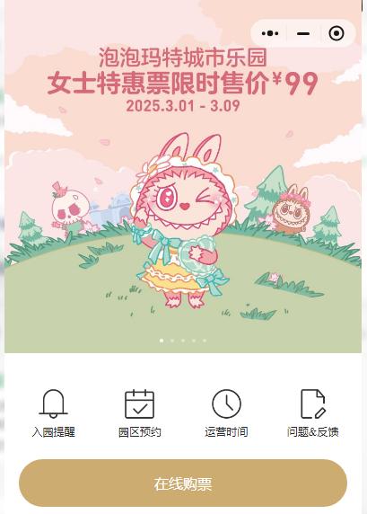 2025年3月1日至3月9日,女士特惠票限時(shí)售價(jià)99元/人(平日150元/人)