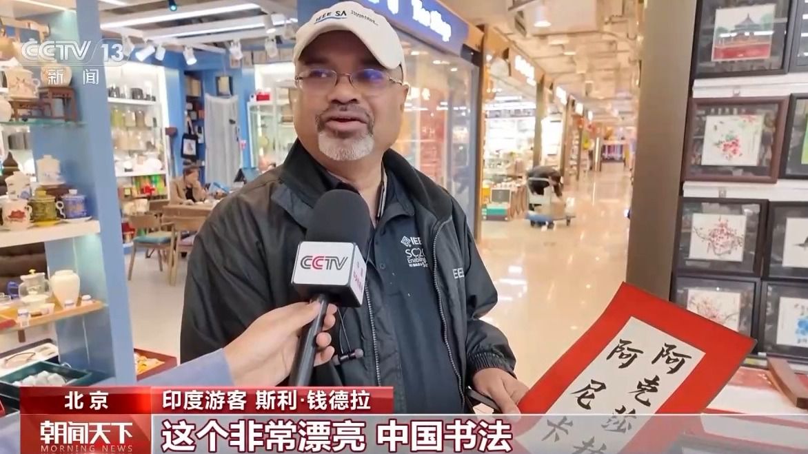 印度游客 斯利·錢德拉:中國電影很流行,我每到一個地方,都會用當?shù)匚淖謱懴屡畠旱拿。我喜歡文化,不同地域的當?shù)匚幕,這個非常漂亮,中國書法。
