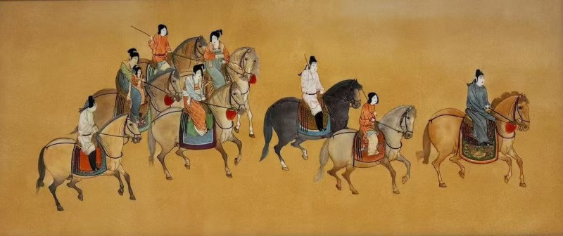 (瓷板粉彩-虢國夫人游春圖-作者-羅爾拉)