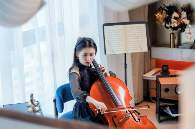 客房體驗更顯匠心獨運:"夢響樂章"主題套房攜手上海交響樂團(tuán)晚高峰音樂會(Rush Hour Concert)品牌,以上海交響樂團(tuán)文創(chuàng)、懸浮樂譜裝置、La Boite Concept音箱與陳列式大提琴構(gòu)建聲光敘事。定期推送的"音樂菜單"與導(dǎo)賞沙龍,讓住客在北外灘居所中聆聽世界頂級樂章,實現(xiàn)藝術(shù)生活的無縫銜接。