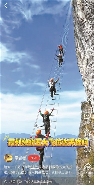 說起戶外運(yùn)動(dòng),您想到的可能是攀巖、漂流、滑翔傘……對(duì)時(shí)尚的年輕人來說,這些可能不夠新鮮了。北京青年報(bào)記者發(fā)現(xiàn),現(xiàn)在在京郊一些旅游景區(qū),飛拉達(dá)是高熱度項(xiàng)目之一。飛拉達(dá)譯自意大利語ViaFerrata,意為巖壁探險(xiǎn)或鐵道式攀登,也被稱為“巖壁上的舞蹈”。穿上護(hù)具,在教練的指導(dǎo)下,走鋼絲橋、吊橋,爬崖壁,還能看風(fēng)景、拍照片,不少年輕人解鎖了這看起來驚險(xiǎn)又刺激的戶外項(xiàng)目。