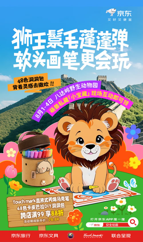 如今暑假期間帶孩子打卡動(dòng)物園和大自然互動(dòng)成為了出游的首選,作為中國(guó)最大的山地野生動(dòng)物園,北京八達(dá)嶺野生動(dòng)物園匯集了世界各地的眾多代表性動(dòng)物,非常適合激發(fā)孩子的創(chuàng)作靈感,在運(yùn)用中掌握繪畫(huà)技能。在8月2日至3日,京東攜手八達(dá)嶺野生動(dòng)物園帶來(lái)“猛獸開(kāi)路 人類(lèi)穩(wěn)住”文具快閃活動(dòng),活動(dòng)期間京東將安排特色籠車(chē)在園區(qū)游覽,為親子游客帶來(lái)有趣有料的繪畫(huà)體驗(yàn),游客完成互動(dòng)集章還能領(lǐng)取精美禮包。現(xiàn)場(chǎng),京東文具攜手青竹畫(huà)材、Touchmark、輝柏嘉等知名品牌設(shè)置了產(chǎn)品展示區(qū),游客可上手品鑒京東甄選的安全無(wú)毒繪畫(huà)文具,掃碼下單還能享受豐厚優(yōu)惠,福利多多。想要和孩子體驗(yàn)一場(chǎng)別開(kāi)生面的繪畫(huà)創(chuàng)作,那就記得鎖定京東的這次快閃活動(dòng)。同時(shí),京東還打造“寶藏文具周”線(xiàn)上會(huì)場(chǎng),為消費(fèi)者帶來(lái)寶藏文具推薦,搜索“安全繪畫(huà)”一鍵直達(dá)暑假寶藏文具周·靈感周會(huì)場(chǎng),安全無(wú)毒隨意畫(huà),親膚水洗真放心。