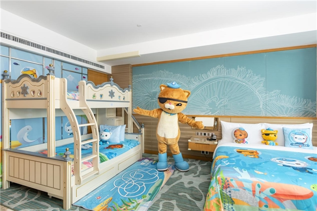 新推出的“海底小縱隊主題房”,以熱門動畫片《海底小縱隊》為藍本,結合動畫人物IP形象及海洋元素,設計了多種房型,為親子家庭打造了一個充滿童趣與探險氛圍的親子空間。