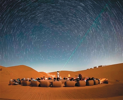 據(jù)介紹,今年暑期夜游活動(dòng)集中展現(xiàn)了沙坡頭旅游的創(chuàng)新探索。在文旅融合上,“音樂+旅游”模式持續(xù)創(chuàng)新,“青春漠漠搭”系列音樂節(jié)、四熹丸子演唱會(huì)等成為新看點(diǎn),形成獨(dú)特的“沙漠音樂之旅”主題線路,特別受年輕游客喜愛。開發(fā)“浪漫+旅游”融合產(chǎn)品,星星酒店借助沙漠優(yōu)質(zhì)觀星環(huán)境,為游客營造沉浸式觀星的浪漫。酒店的觀星活動(dòng)分為室內(nèi)星空講座和室外裸眼觀星。此外,酒店還建有專業(yè)的陣列式天文觀測(cè)站和圓頂天文臺(tái)。英國游客亞當(dāng)說:“這里是最像火星的浪漫之地。”