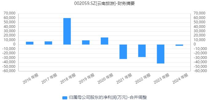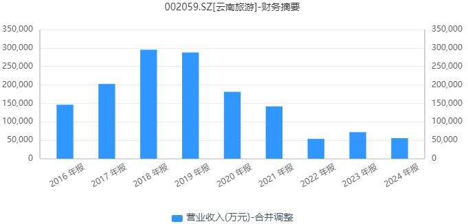 雖然擁有稀缺的旅游資源,但是在業(yè)績上,云南旅游卻沒有將優(yōu)勢轉(zhuǎn)化為利潤。營收方面,公司在2018年達(dá)到高點(diǎn)后就快速下滑,這幾年?duì)I收規(guī)?s水較嚴(yán)重,2024年公司的營收5.57億元,僅相當(dāng)于2018年?duì)I收的18%左右。