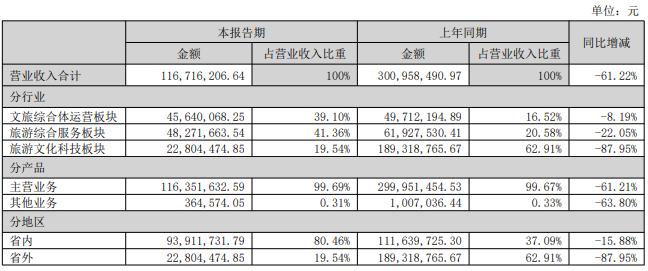財(cái)報顯示,最近幾年,公司文旅科技板塊的營收占比均在50%以上,是公司的主要驅(qū)動力,然而今年上半年,公司文旅科技板塊營收僅有2280.45萬元,占比19.54%,縮水嚴(yán)重。