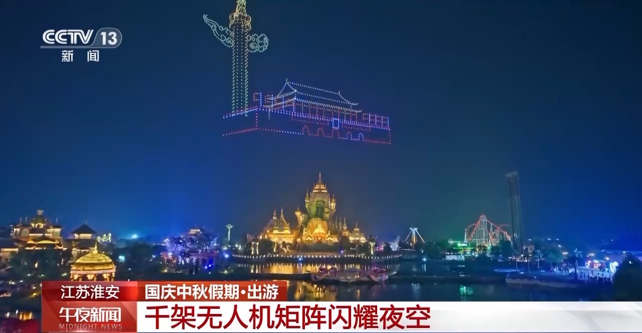 夜幕降臨,在江蘇淮安西游樂園,1600架無人機(jī)同步升空,組成“我愛你中國”、天安門、璀璨中國等造型圖案,科技與光影的碰撞,譜寫了一曲璀璨奪目的 “空中詩篇”。全新升級的“國慶煙花大會(huì)”更是將現(xiàn)場氛圍推向高潮。絢爛的煙花與水幕交織相映,形成了一幅立體畫卷,營造出了既浪漫又熱烈的節(jié)日氛圍。