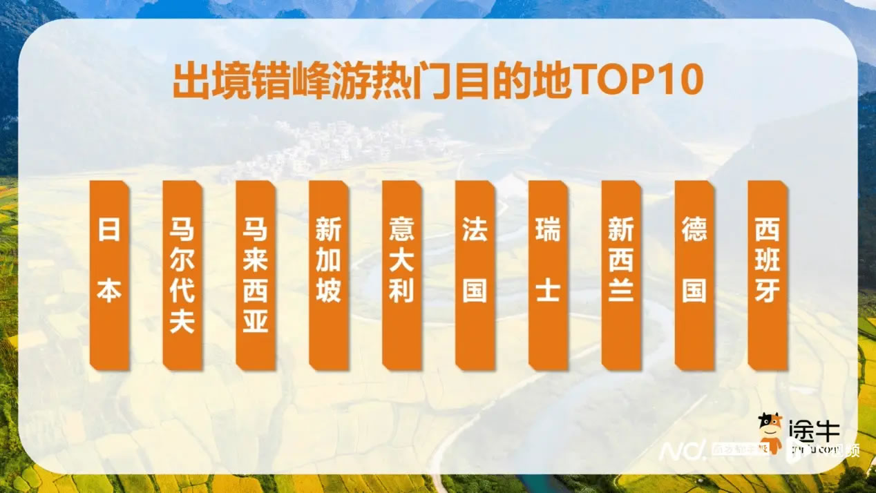 在出境錯峰游中,日本、韓國、泰國、馬來西亞、新加坡等短線目的地,以及意大利、法國、瑞士、新西蘭等長線國家受到關(guān)注。途牛數(shù)據(jù)顯示,出境錯峰游中跟團游占比接近75%,如“德國-法國-意大利-瑞士12日游”“新西蘭南北島12日游”等產(chǎn)品預(yù)訂熱度靠前。