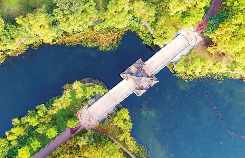 10月25日拍攝的臨汾市汾河文化生態(tài)景區(qū)。景區(qū)內(nèi)波光粼粼,水草搖曳,疊翠流金。近年來(lái),當(dāng)?shù)赝ㄟ^(guò)建設(shè)城市公園,綠化美化城市空間,實(shí)現(xiàn)開(kāi)門(mén)見(jiàn)綠、推窗見(jiàn)景。(記者 李現(xiàn)。