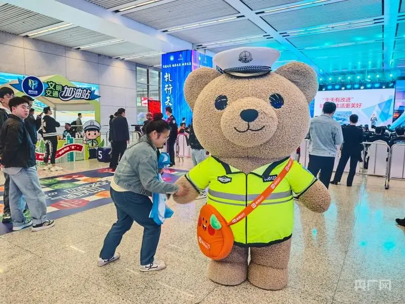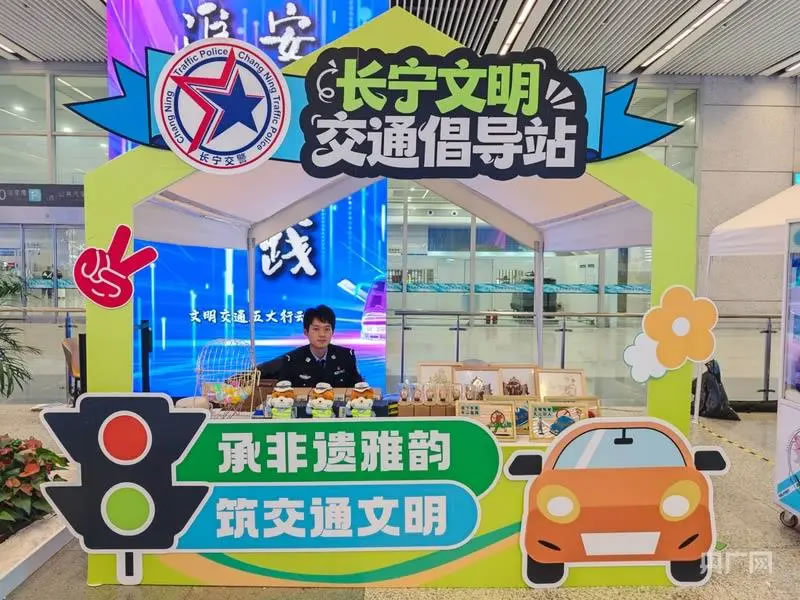啟動儀式后,現(xiàn)場設置的多個互動體驗區(qū)吸引了大量市民駐足參與。文明交通游戲互動區(qū)融合了快樂大轉(zhuǎn)盤、抓娃娃機、交通標識猜謎等趣味項目;交通科技體驗區(qū)則展示了包括高科技警用設備、警用無人機、安全駕駛AR模擬、酒駕測試眼鏡在內(nèi)的先進裝備,讓市民直觀感受科技賦能交通管理的成效。文明實踐快閃店集中呈現(xiàn)了虹橋機場、虹橋火車站等窗口單位在文明實踐中的創(chuàng)新成果。