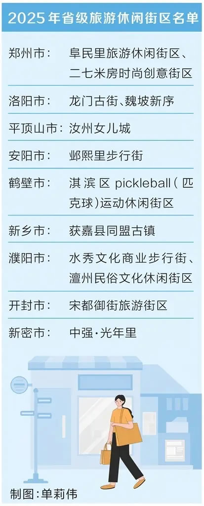 11月14日,河南省發(fā)展改革委根據(jù)《旅游休閑街區(qū)等級(jí)劃分》國(guó)家行業(yè)標(biāo)準(zhǔn)(LB/T082-2021)和《河南省省級(jí)旅游休閑街區(qū)評(píng)定細(xì)則(試行)》,認(rèn)定鄭州阜民里旅游休閑街區(qū)、洛陽龍門古街、安陽鄴熙里步行街等12家休閑街區(qū)為2025年河南省省級(jí)旅游休閑街區(qū)。