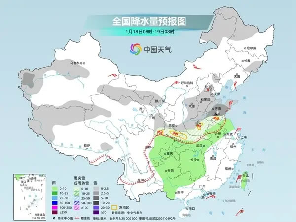 今天,雨雪將繼續(xù)向南大幅擴張;明天起,此輪雨雪進入鼎盛時段。未來四天,中東部地區(qū)自北向南將先后出現大范圍雨雪天氣過程,秦嶺-淮河以南地區(qū)降水相態(tài)復雜,有雨雪及凍雨的轉換。西北地區(qū)東部、華北中南部、黃淮、江漢、江淮西部、江南北部等地有中到大雪或雨夾雪,其中,陜西南部、河南中南部、湖北西部、湖南北部、安徽西部等地部分地區(qū)有暴雪,河南中南部、湖北西部、湖南、貴州、重慶東北部等地部分地區(qū)有凍雨,西南地區(qū)東部、江南南部、華南西部等地有小雨。