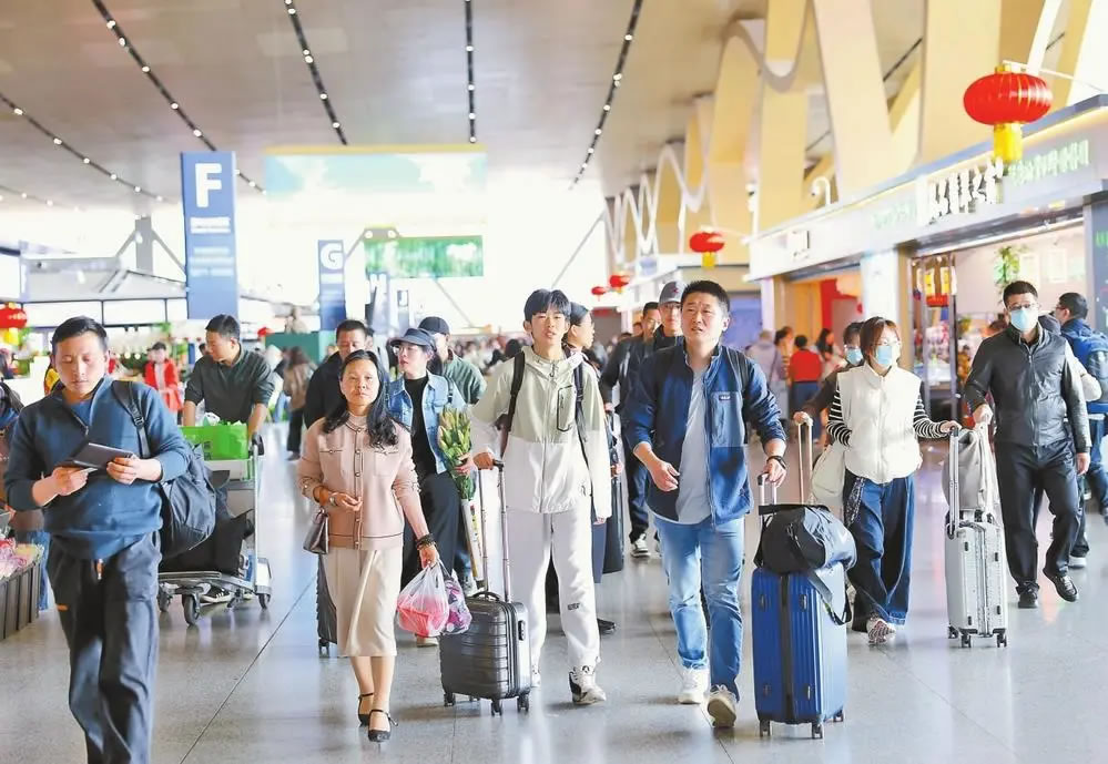2月23日,昆明長水國際機場迎來返程客流高峰。記者 黃興能 攝
