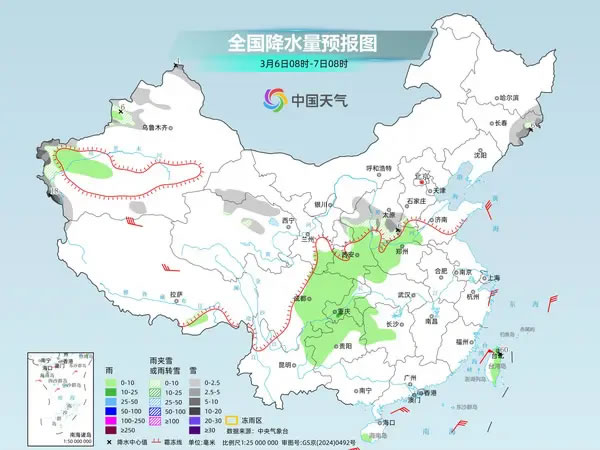 隨著京津冀等地雨雪結(jié)束,明天起至12日北方將進(jìn)入降水間歇期,大部地區(qū)以晴或多云天氣為主。不過,西南地區(qū)依然多雨,6日至9日貴州、重慶、四川一帶會(huì)有頻繁陰雨,公眾外出需帶好雨具、注意防滑。