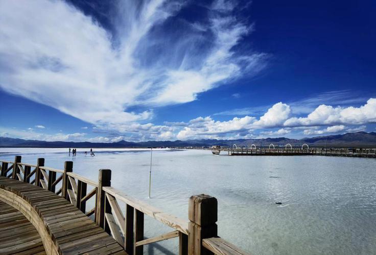 茶卡鹽湖景區(qū)擁有國(guó)內(nèi)首個(gè)鹽湖生態(tài)環(huán)保型觀光游船,游客可以乘小火車到達(dá)鹽湖碼頭站后乘游艇,去領(lǐng)略現(xiàn)代工業(yè)采鹽的風(fēng)景。