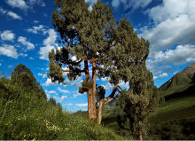 祁連圓柏為常綠喬木。是青藏高原氣候驟變時期產(chǎn)生的樹種,是名副其實(shí)的常青樹。其葉在幼樹上全為刺形,隨著樹齡的增長刺形葉逐漸被鱗形葉代替,廣泛分布于海拔2600 -4300米的陽坡、半陽坡地帶,耐寒旱、耐貧瘠,對土壤要求不高,能生于酸性、中性及石灰質(zhì)土壤上,其枝葉會散發(fā)出獨(dú)特的清香,具有清神醒腦的功效。因其根系發(fā)達(dá),有良好的保水固土和涵養(yǎng)水源的作用,固為祁連地區(qū)主要的造林樹種和草原牧護(hù)林。以葉入藥,性苦,有止血、鎮(zhèn)咳功效。