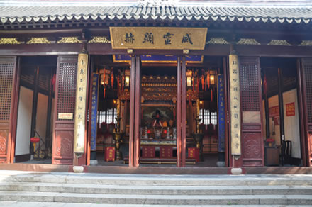 上海城隍廟,位于上海市黃浦區(qū)方浜中路249號,坐北朝向南,內(nèi)部有大門、二門、戲樓、大殿、寢宮、東西廊廡,沿中軸線依次排列,總面積約三千余平方米。廟內(nèi)主體建筑有大殿、元辰殿、父母殿、關(guān)圣殿、文昌殿等9個殿堂,總面積約三千余平方米。大殿、中殿改為鋼筋混凝土結(jié)構(gòu)。大殿高16米,寬13.7米,進(jìn)深21米。歇山頂,彩椽畫棟,翠瓦朱檐,華麗輝煌。大殿前有照壁、牌坊、戲臺、碑亭。大殿祀霍光,中殿祀秦裕伯,兩側(cè)花廳奉城隍父母,后殿奉城隍夫人,樓上為寢宮。
