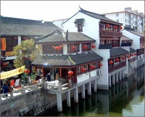 歷史上七寶鎮(zhèn)是個典型的江南水鄉(xiāng)和重要的農村集鎮(zhèn)。鎮(zhèn)中橫亙著自西向東的 蒲匯塘,為太湖水系之一,鎮(zhèn)東有南北向的橫瀝港,北接吳淞江,南接黃浦江。蒲匯塘和橫瀝港相交于鎮(zhèn)中心,境內另有支河十余條,當年溝通市街的石橋就有27座之多。七寶的鎮(zhèn)市,集中于蒲匯塘南北兩條大街。當時的七寶鎮(zhèn)上,遍布酒館、茶樓、布店、糧行,人氣很旺盛,一直維持著繁榮昌盛的局面。