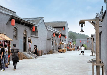 八路村村落建筑總體鳥(niǎo)瞰呈“路”字型,這里高度濃縮八路軍的戰(zhàn)斗精神和光輝業(yè)績(jī),是一個(gè)繼承和發(fā)揚(yáng)八路軍文化,進(jìn)行愛(ài)國(guó)主義教育及精神文明教育的生動(dòng)課堂,突出八路軍的軍旅生活、文化生活,文藝創(chuàng)作、抗戰(zhàn)宣傳、文化教育,軍工生產(chǎn)、政權(quán)建設(shè)、新聞出版和商貿(mào)服務(wù)等內(nèi)容。