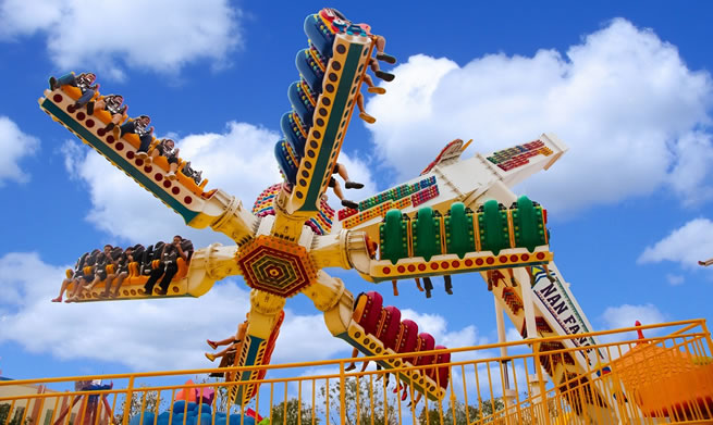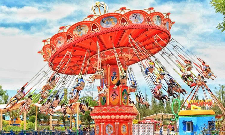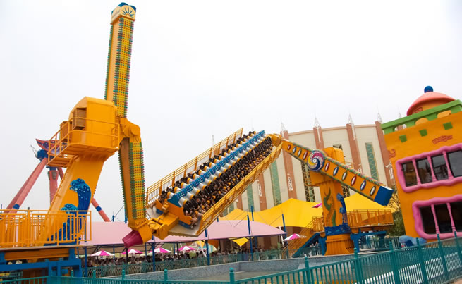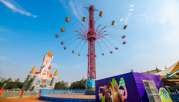 在優(yōu)美、輕快的旋律中,碩大的轉(zhuǎn)盤和轉(zhuǎn)臺(tái)錯(cuò)向旋轉(zhuǎn)、搖擺,隨著轉(zhuǎn)盤的搖擺,塔身徐徐上升。此時(shí),穩(wěn)坐飛椅的游客在離心力的作用下,上下飛旋,時(shí)而像在藍(lán)天翱翔,時(shí)而像在海上沖浪,能感受到騰云駕霧的快感。想體驗(yàn)兒時(shí)蕩秋千的感覺(jué)嗎,想體驗(yàn)在空中展翅飛翔的暢快嗎,那就來(lái)到高空飛翔盡情的放聲尖叫吧……