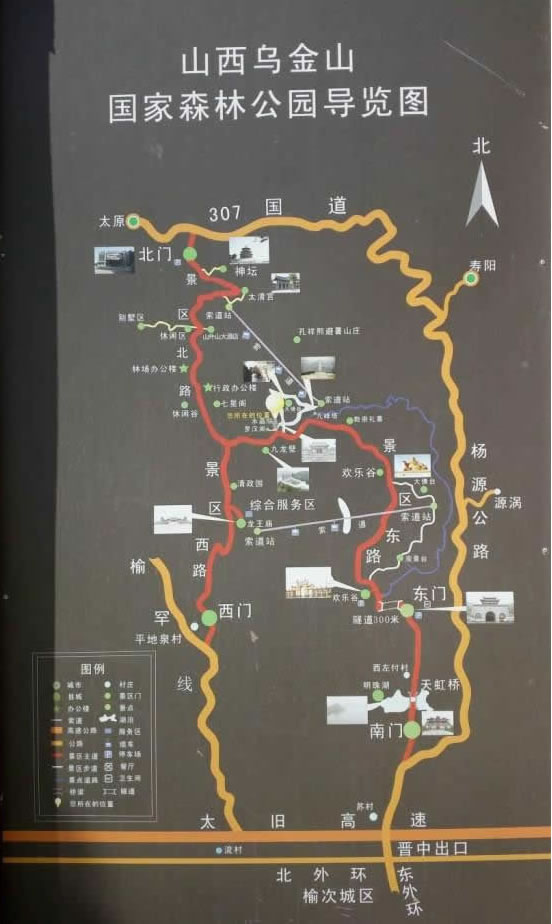 烏金山位于山西省晉中市榆次區(qū)境內(nèi),自古就是避暑勝地。北部與太原市相連,地勢北高南低,群山疊嶂,奇峰毓秀,海拔1200--1489米,有天然森林三萬畝,松柏密集,植被隆厚,白皮松婷婷玉立,側(cè)柏風姿卓然,油松蒼勁挺拔,冠蓋奇特。總面積5.5萬畝,森林面積3.1萬畝,森林覆蓋率達80%以上。境內(nèi)有佛教建筑水晶院、正壽寺、華嚴寺、和合寺、大佛臺、西晉王廟遺址,又有道教建筑太清宮、呂洞賓詞碑、玉皇閣、龍王廟、五爺廟、九峰塔以及孔祥熙避暑別墅等景點。
