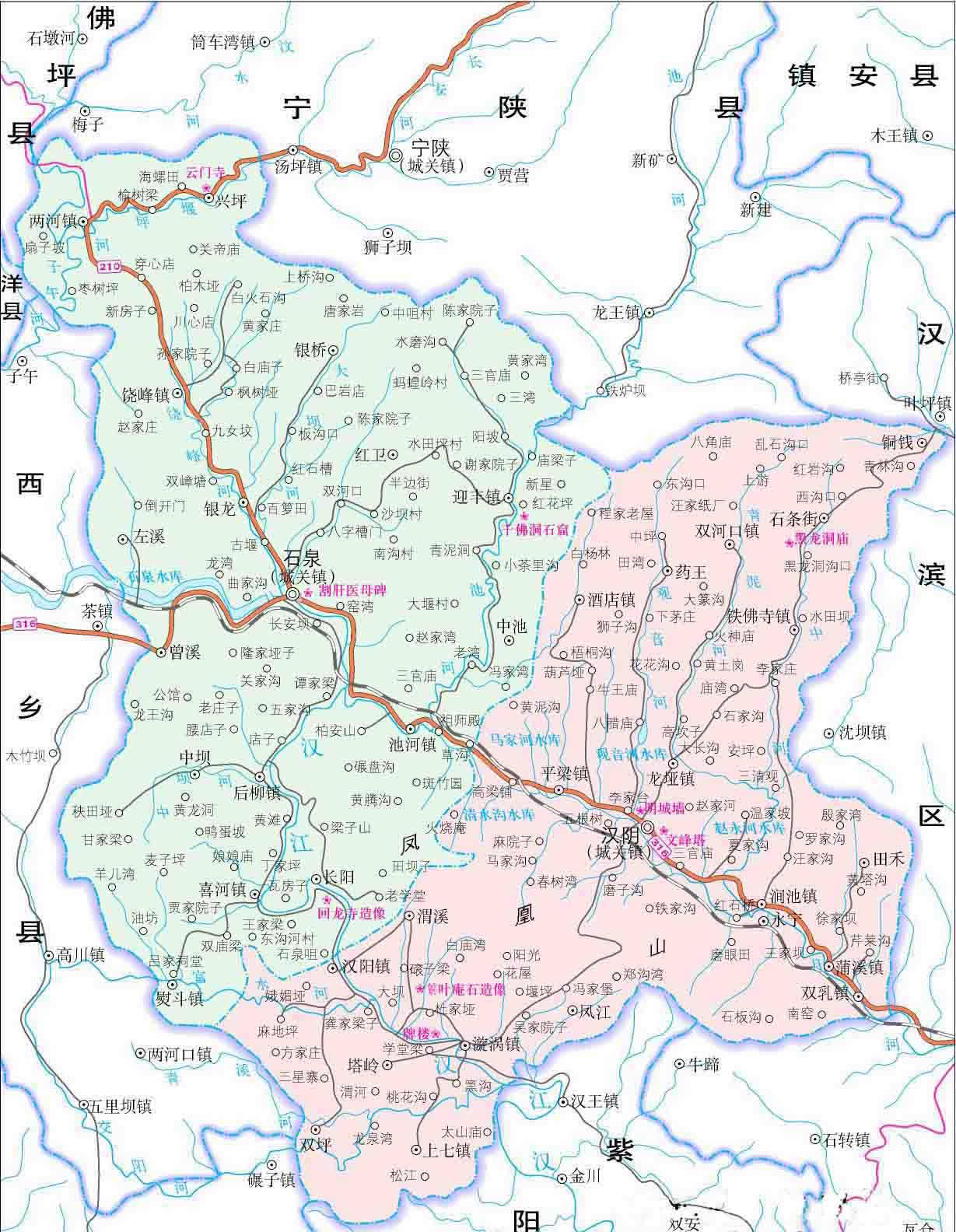 漢陰縣轄12個(gè)鎮(zhèn)、6個(gè)鄉(xiāng):