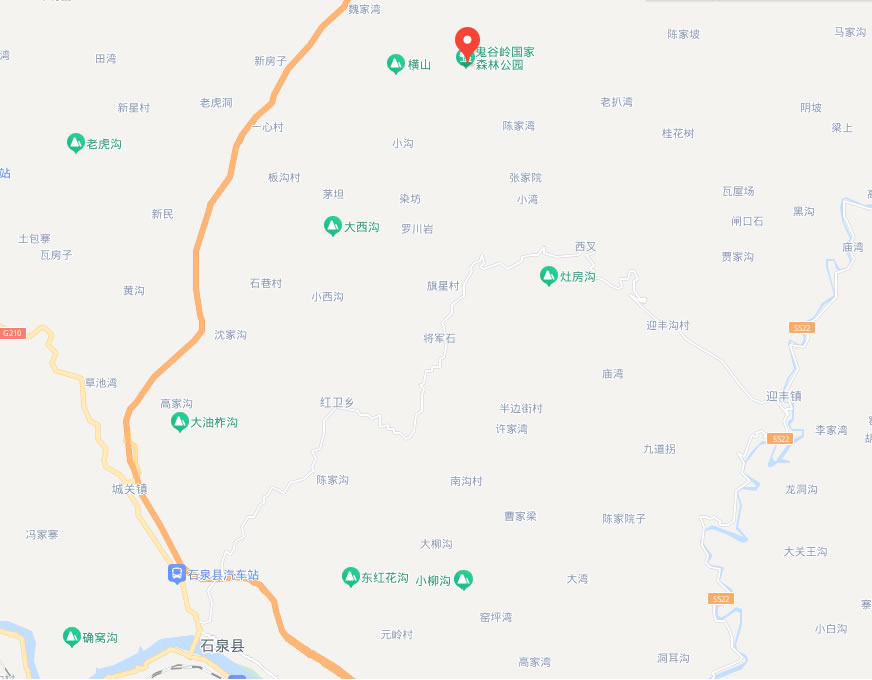 大溪溝,古稱青溪溝。青溪即為歸谷,位于鬼谷嶺東麓山腳下。溝狹而長,約有6公里。是鬼谷嶺下最大最長的一條幽谷,也是東線上鬼谷嶺的必經(jīng)路徑之一。大溪溝(河)發(fā)源于云霧山主峰鬼谷嶺。河流從嶺上流下來,一直朝東南方向延伸,流徑6公里,注入梧桐河,再入池河,最后流入漢江。沿河修有一條簡易公路,沿公路上行,經(jīng)過靈官埡,直達(dá)鬼谷嶺。