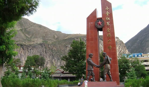 小金縣在中國革命史上具有光輝的一頁。1935年,中國工農紅軍一方面軍在毛澤東、朱德、周恩來等老一輩無產階級革命家的帶領下,餐風露宿,歷盡艱辛,翻越了長征途中的第一座大雪山—夾金山,與紅四方面軍在該縣達維鄉(xiāng)勝利會師;在美興鎮(zhèn)天主教堂召開了團以上的干部參加的“同樂會”;在兩河口(今兩河鄉(xiāng))召開了具有重大歷史意義的中共中央政治局擴大會議。勤勞勇敢的小金人民節(jié)衣縮食支援紅軍,一千多名優(yōu)秀兒女參加了紅軍,為長征和中國革命勝利作出了積極貢獻。今年5月,由國務院核定批準,國家文化部公布了全國第六批重點文物保護單位和第一批非物質文化遺產目錄。小金縣紅一、四方面軍會師遺址(達維會師橋、紅軍“懋功同樂會”遺址——天主教堂)和“兩河口政治局會議”會址榜上有名。