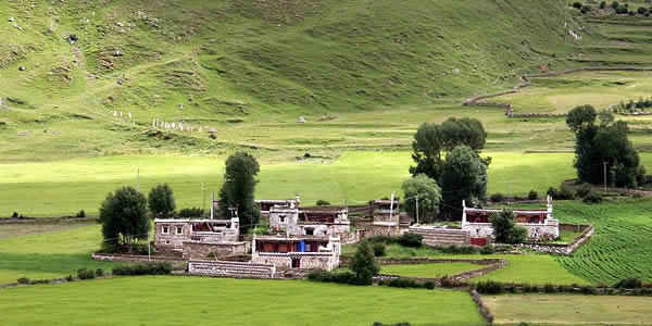 噶達(dá)強(qiáng)巴林惠遠(yuǎn)寺。惠遠(yuǎn)寺,位于道孚縣協(xié)德鄉(xiāng)境內(nèi)、S303線八美至丹巴方向8公里處的山間小盆地內(nèi),海拔3600米;葸h(yuǎn)寺的所在地實(shí)為風(fēng)水寶地,盆周的山形渾圓,多有柔和的皺折,猶如盛開的蓮花,盆地內(nèi)溪水叮咚,遠(yuǎn)有森林牧場(chǎng),近有村舍農(nóng)田,地勢(shì)平坦,風(fēng)景秀麗。解放前,惠遠(yuǎn)寺在藏區(qū)各教派大小喇嘛寺中,是唯一一座由國(guó)家專款建造、維修、供奉香火的黃教寺廟。它曾作為七世達(dá)賴格桑嘉措的行宮,享有佛教“九龍九獅”的崇高尊號(hào)而名揚(yáng)康藏,享譽(yù)中外。