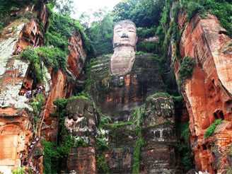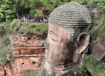 凌云山緊傍岷江,上有凌云寺,建于唐代。依山開鑿大佛一座,通高71米,腳背寬8.5米,為當(dāng)今世界第一大佛。大佛為唐代開元名僧海通和尚創(chuàng)建,歷時90載完成。大佛為一尊彌勒座像,雍容大度,氣魄雄偉,被詩人譽為“山是一尊佛,佛是一座山”。