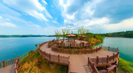 仙海親水棧道,臨湖而建,采用木、石等生態(tài)材質(zhì),融湖光山色于一體。起于雷耀酒店,經(jīng)水庫大壩,沿湖畔蜿蜒曲折,止于長虹研發(fā)園。首期全長約6公里,遠看近看,宛如一條蛟龍,行走其間,宛如蛟龍入海。