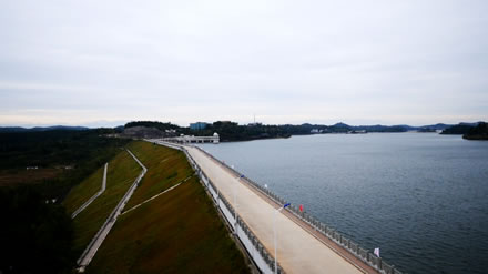 觀光大壩長653米,壩高55米,壩頂高程531.5米,總庫容9820萬立方米,正常蓄水高為529米,集雨面積達13.8平方公里。出水流徑游仙、三臺、鹽亭、射洪四縣(區(qū)),為沿途49萬余畝農(nóng)田提供灌溉、工業(yè)、人畜飲水。觀光大壩所在的沉抗水庫,科學地解決了湖水自動分流、自動排沙、控制進水流量等問題,是仙海造福人民的偉大水利工程。