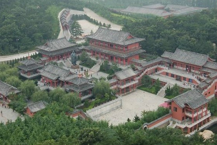 盤山五峰又稱五臺,紫蓋峰為中臺,自來峰為北臺,九華峰為東臺,舞劍峰為西臺,先師臺為南臺。自唐朝佛教的興起,盤山陸續(xù)修建了72座寺廟,13座玲瓏寶塔。因此,歷代帝王將相進山參禪禮佛絡繹不絕,成為佛教的圣地。與山西佛教圣地“五臺山”東西對應,稱“東五臺山”。中國佛教協(xié)會會長趙樸初手書的“東五臺山”就刻翠屏峰上,宿云亭旁邊有天津著名書法家題寫的“氣象萬千”四個大字,為雞毛隸書。