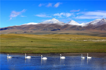 天鵝湖坐落在草原上,在新疆和靜縣巴音布魯克區(qū)政府約60千米的巴音鄉(xiāng)西南部。天鵝湖實際上是由眾多相互串聯(lián)的小湖組成的大面積沼澤地,這是中國第一個天鵝自然保護(hù)區(qū)。保護(hù)區(qū)水草豐茂,氣候濕爽。鳥類有128種,隸屬14目30科80余屬,其中雀形目53種,非雀形目75種;繁殖鳥95種,占74%,其中留鳥34種,棲息著中國最大的野生天鵝種群,是鳥類繁殖和渡夏的棲息地。獸類有20余種,其中,兩棲類2種,魚類5種。其中屬國家Ⅰ類保護(hù)的有8種,如雪豹、黑鸛、金雕、白肩雕等,Ⅱ級保護(hù)的有25種,如天鵝、盤羊、雪雞等。